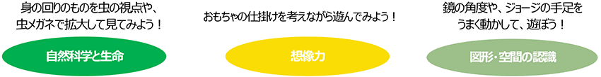 「これなあに?」「どうしてこうなるの?」と、子どもは大人にどんどん質問します。 好奇心という学びのエンジンを持っているからです。そんな質問の嵐への最良の対応は、正解を教える先生になることではなく、大人も「おさるのジョージ」になることです。子どもの知的好奇心を増幅させる「知りたがり屋」の遊び仲間になってみましょう。小さなおもちゃで遊ぶときも、「ほんとに、どうしてこうなるの?」と、わからないことを面白がる仲間がいれば、考えること自体が楽しい遊びになって続くはずです。