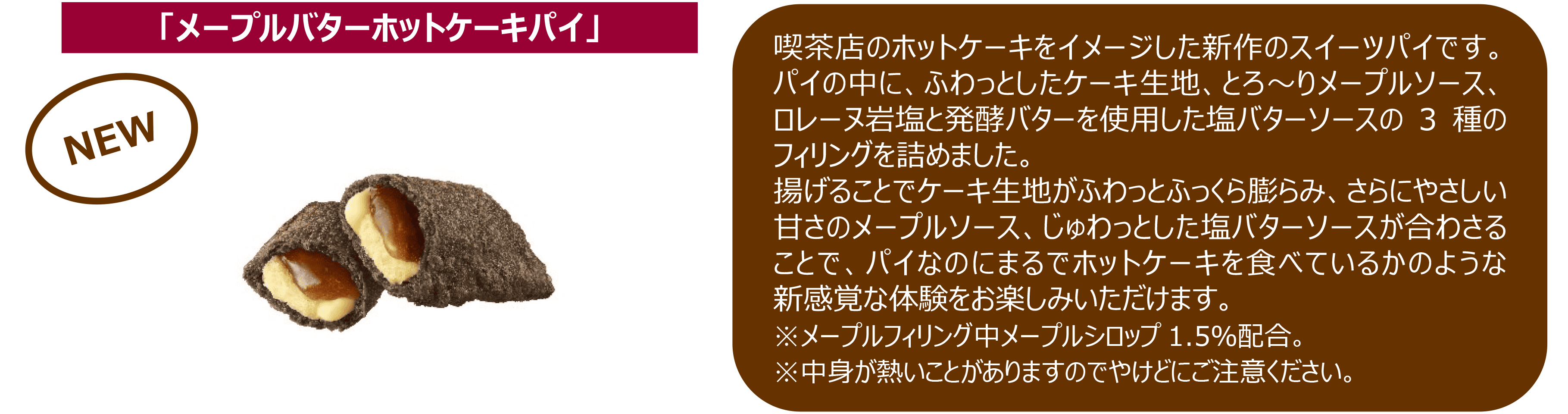 | メープルバターホットケーキパイ | 200円~ | 2024年4月24日(水) 〜 5月下旬(予定) |