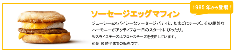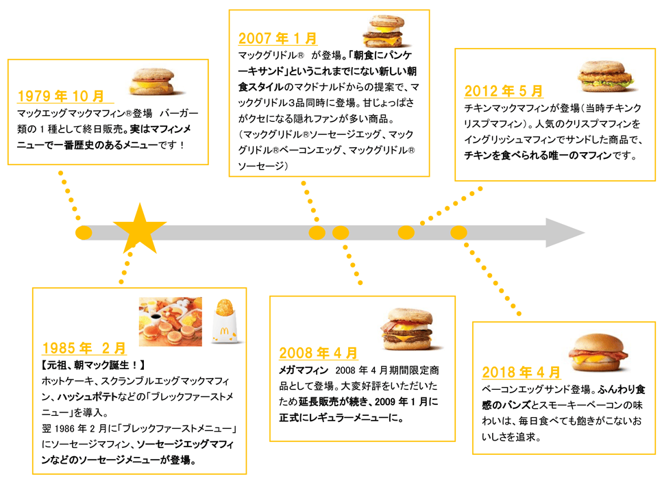 「エッグマックマフィン」からスタートした朝食メニューは様々な進化を遂げ、40年を迎える今年も、皆さまの一日の始まりにおいしい元気を届けています。