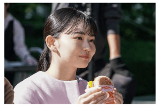 会議が急遽中止になったことで、不意に訪れた「朝マックタイム」に岡田さんが歓喜の声を上げるシーンでは、あまりにもパワフルすぎる演技に圧倒され、ビックリしながら笑いを堪える姿を見せていた山田さん。岡田さんはややオーバーアクション気味に演技を行うプランを立て、山田さんも予め把握していましたが、「キタキタキター︕」と道のど真ん中で叫ぶ岡田さんの演技レベルが予想の範囲を超えていたため、隣の山田さんはもちろん周囲の通行人役の出演者や撮影スタッフまでもが、目を丸くして驚きの表情を見せていました。