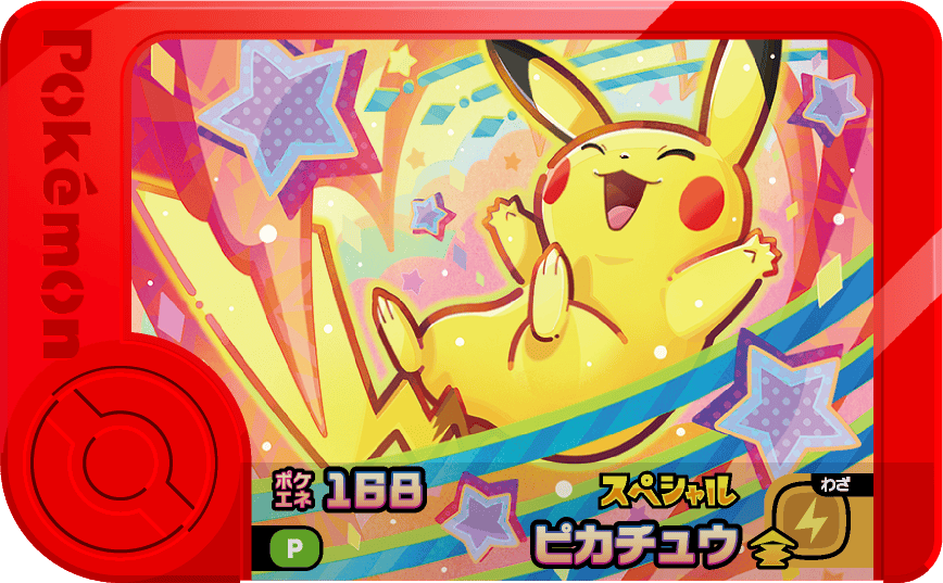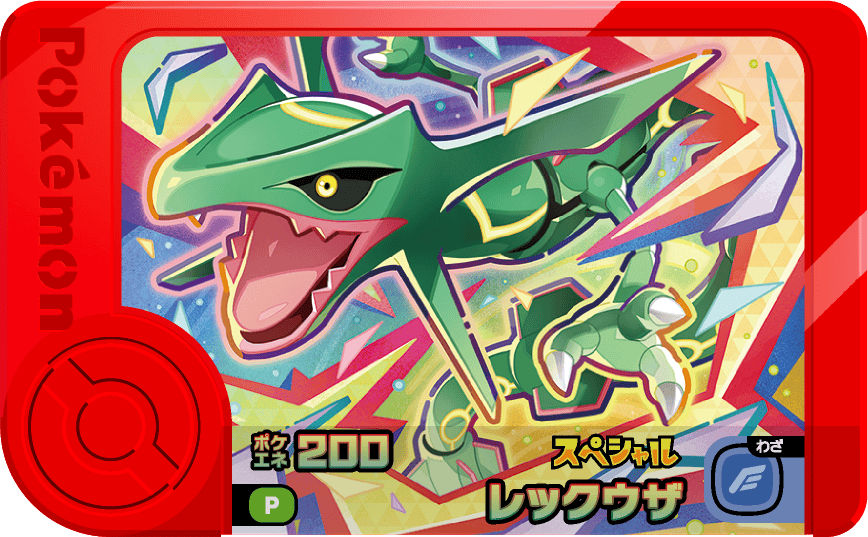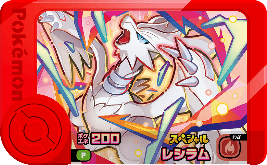 「ピカチュウ」と伝説のポケモン「レシラム」「ゼクロム」「キュレム」「レックウザ」「オーガポン」のマクドナルドオリジナルスペシャルフレンダピックです。フレンダピックに書かれている「ポケエネ」「わざ」「タイプ」などの数値や特性をもとに、勝つための戦略を考えて遊びます。