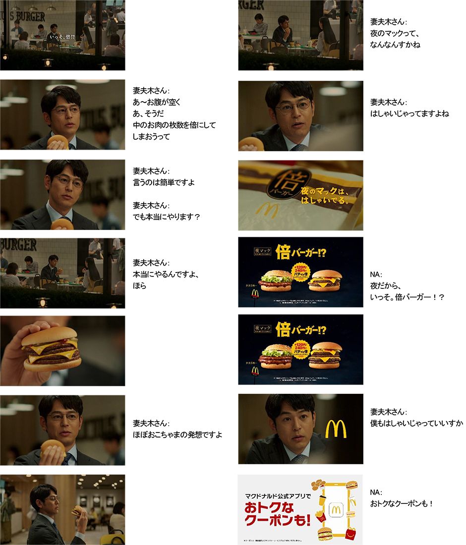 日本マクドナルド株式会社(本社:東京都新宿区、代表取締役社長兼CEO:トーマス・コウ)は、2025年に「倍バーガー」や「ポテナゲ」などの“夜マック”の魅力をお伝えする新TVCMシリーズを放映いたします。『夜のマックは、はしゃいでる。』というテーマで、妻夫木聡さんがパティを倍にしてしまう「倍バーガー」の魅力を語る新TVCMを、3月18日(火)から全国放映開始いたします。