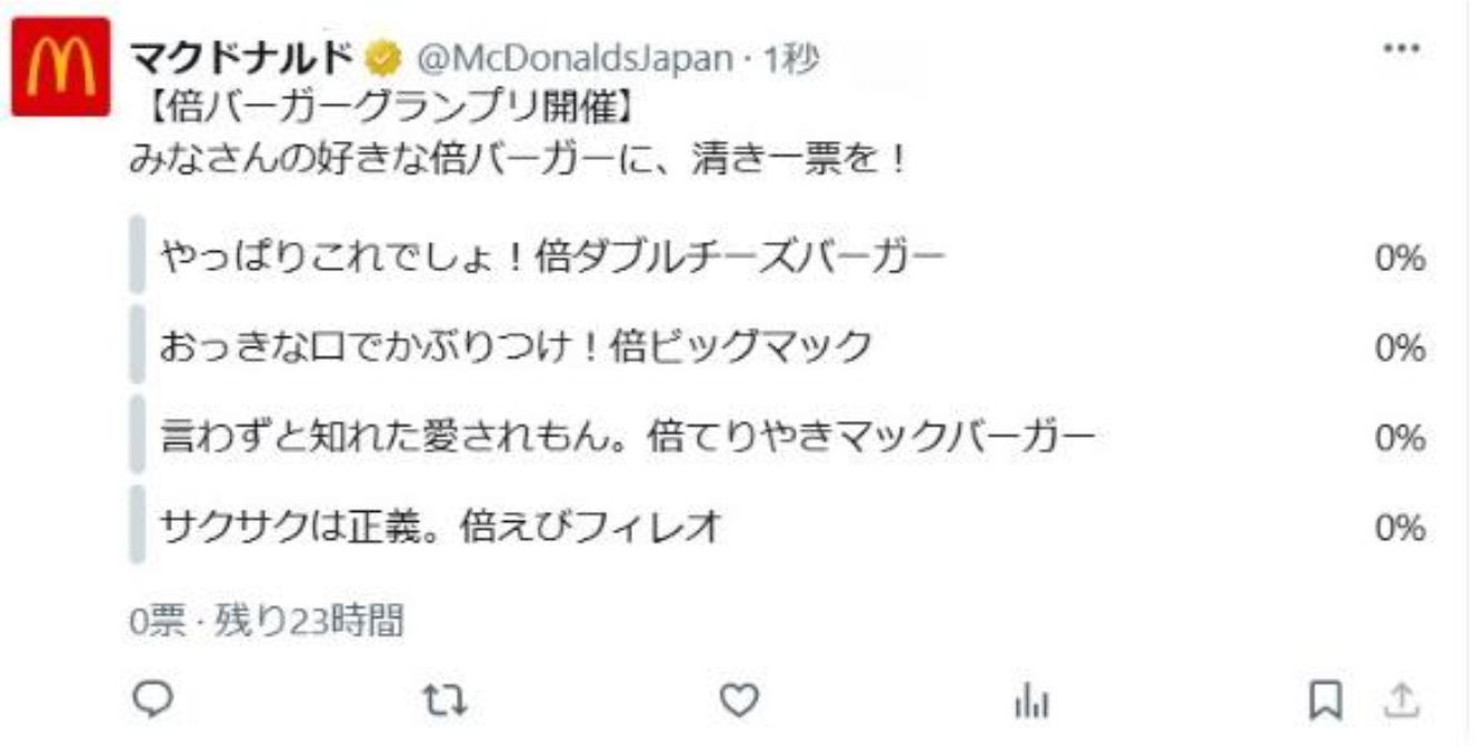 マクドナルド公式Xにて、人気「倍バーガー」を大調査!
