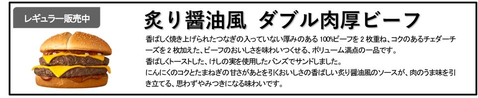 | 炙り醤油風 ダブル肉厚ビーフ | 580円~ | 850円~ | レギュラー販売中 |