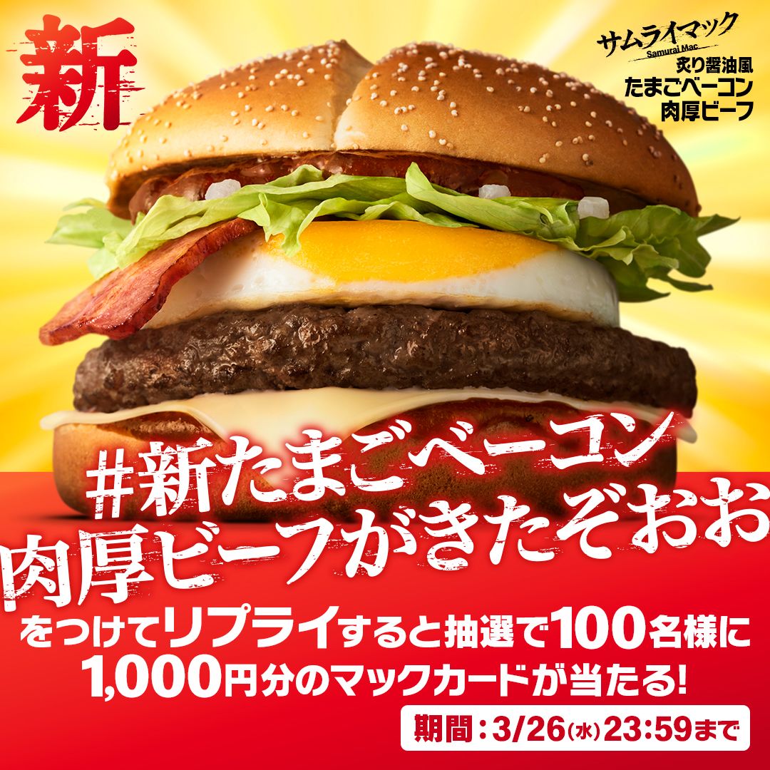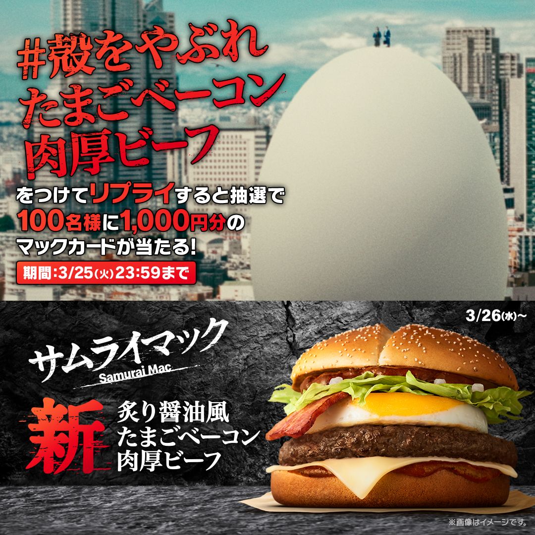 日本マクドナルド株式会社(本社:東京都新宿区、代表取締役社長兼CEO:トーマス・コウ)は、2020年4月に初登場し、2021年4月よりレギュラー販売している『サムライマック』と銘打った肉厚ビーフを使用したバーガーシリーズを初リニューアルし、レギュラー販売中の「炙り醤油風 ダブル肉厚ビーフ」に加え、新レギュラー商品として、「炙り醤油風 たまごベーコン肉厚ビーフ」を、3月26日(水)より全国のマクドナルド店舗で販売いたします。
