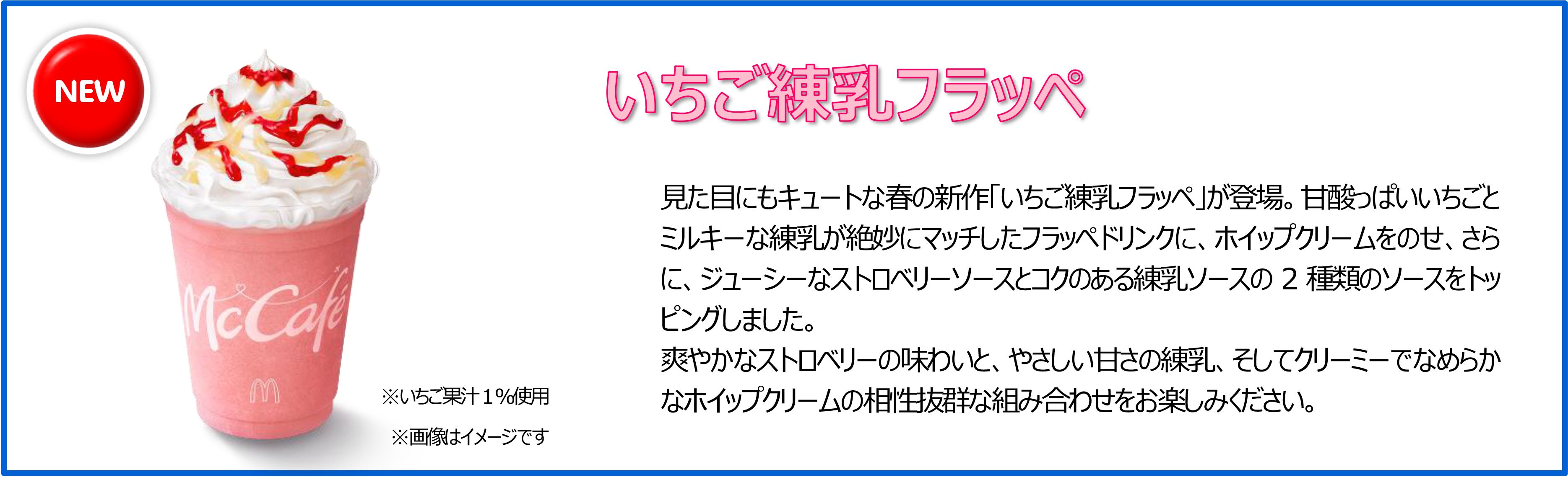| いちご練乳フラッペ (※いちご果汁1%使用) |