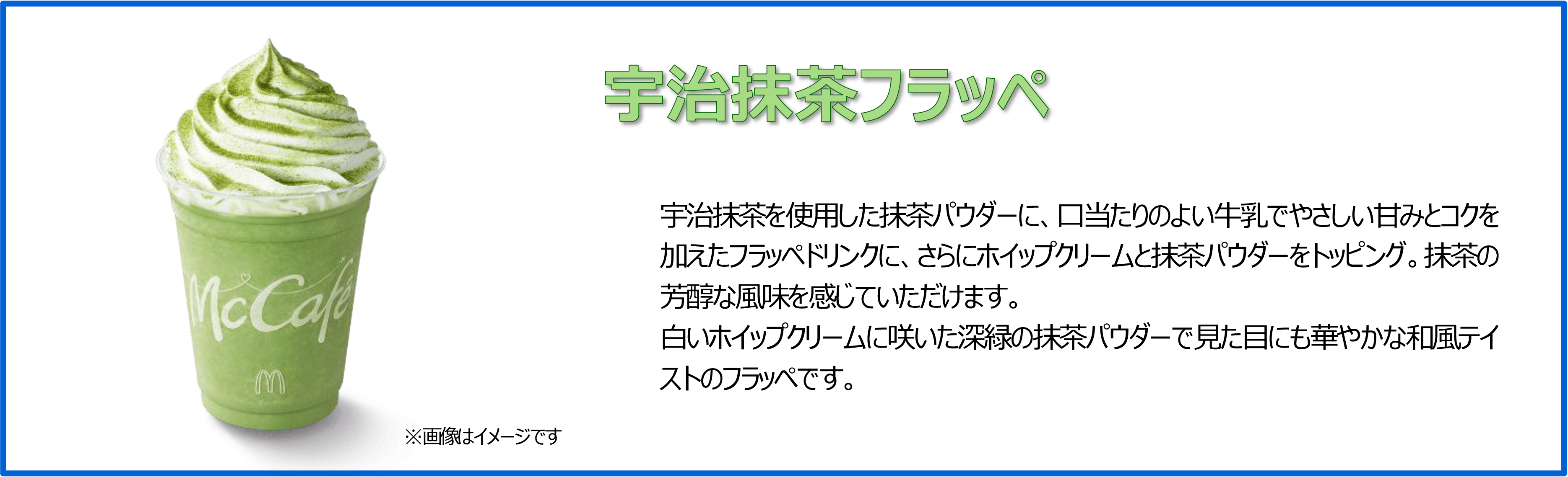 ※「宇治抹茶フラッペ」はMcCafé by Barista®店舗ではレギュラー商品として販売しております