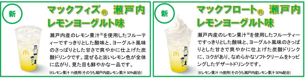 | マックフロート 瀬戸内 レモンヨーグルト味 ※レモン果汁1%使用(そのうち瀬戸内産レモン果汁50%配合) |