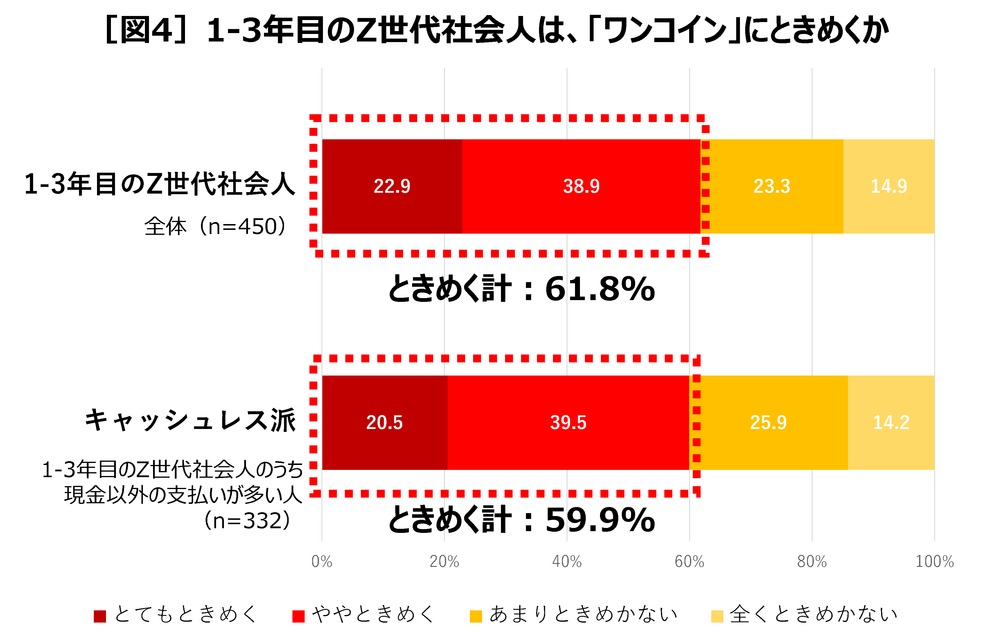 また、マクドナルドは、ボリューム感がありながら500円台で楽しめる5つのおトクなセットがこの春より5つのラインアップ『セット500』に進化したことから、この春入社したばかりの新入社員を含む入社1-3年目のZ世代社会人450人&全国の20-60代男女600人に対して、独自調査を行いました。調査の結果、キャッシュレス化が進む現代における興味深いデータが明らかになりました。Z世代社会人の7割超にあたるキャッシュレス派では、実際にはコインを使わないにも関わらず、その約6割が「ワンコイン」という言葉に“ときめく”そうです。(詳細は下記を参照) そんなワンコインメニューを含む、500円台セットが全5つの「セット500」を通して、おトクで満足度の高いお食事を気軽に楽しめる場として、これからもマクドナルドをご利用いただければと存じます。
