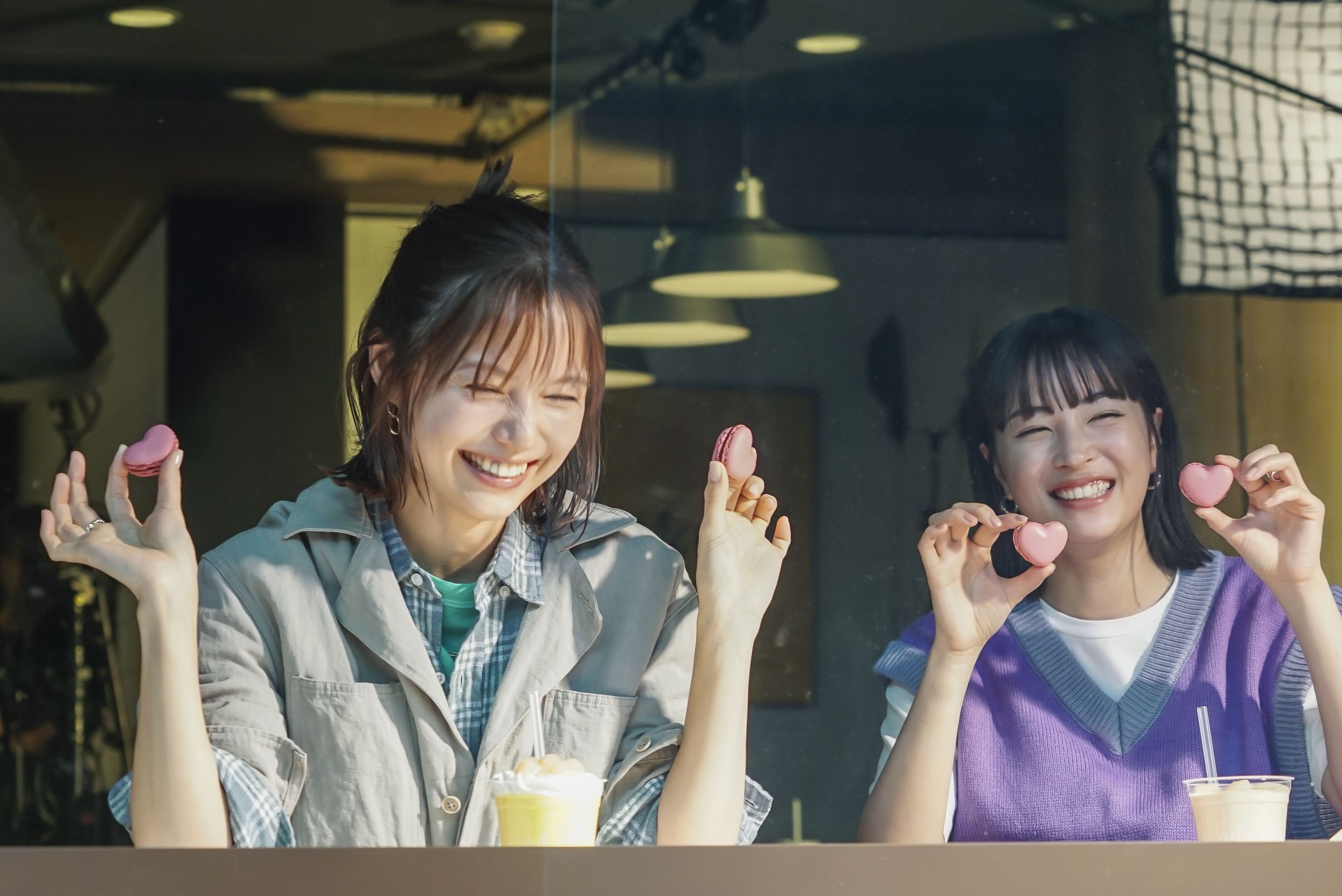 インサートカットの撮影では、互いの指を合わせてハート型を描く手遊びなど“仲よし姉妹”らしさ満点の演出が連発。ハート型のマカロンを使ったミニアクションも盛りだくさんで、宮﨑さんがマカロンを胸に当てて「ドゥックン!ドゥックン!」と鼓動を表現したかと思えば、広瀬さんは2個のマカロンで両目を隠して「もう~キュンです!」とおどけてみせ、さらに宮﨑さんも同じアクションで「お姉ちゃんもキュンです」と返すなど、本気でわちゃわちゃと遊んでいる姿に「これが演技とは思えない(笑)」と周囲のスタッフも言葉を漏らすほど。2度目の姉妹役でますます息の合った宮﨑さん&広瀬さんコンビの次回作に期待する声も聞かれました。