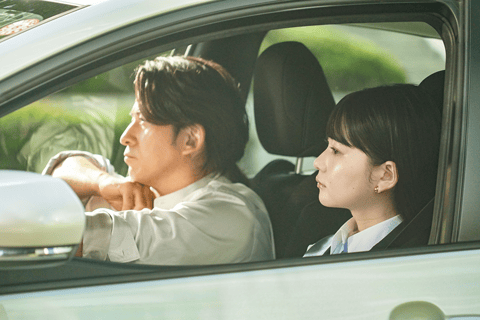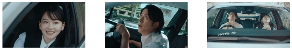 朝からクルマで出かける仕事が多く、ドライブスルーを利用して「朝マック」を買っていることを岡田さんが語ると、家族そろってクルマで旅行に出かける際は必ず「朝マック」を食べていたという山田さんも、「子どもの頃、旅行のワクワク感と『朝マック』はセットだったから、今でもドライブスルーで『朝マック』を買うのが好き」とエピソードを披露しました。そんな幼少期の楽しい思い出に浸りながら撮影に臨んだからか、マクドナルド店舗を見つけて「朝マックタ~イム」とポーズをとるシーンでもテンションがかなり高めで一発OK。監督も「バッチリで~す!」と称賛していました。