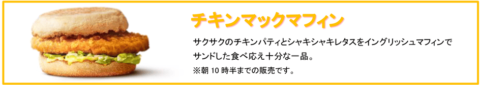 | チキンマックマフィン | 210円~ | 420円~ コンビ 270円~ |