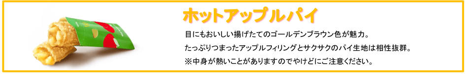 | ホットアップルパイ | 140円~ | 開店~閉店まで ※どの時間帯でも ご購入いただけます |