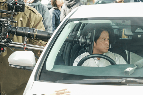 早すぎる朝の時間帯を山田さんが「逆に、朝マックタ~イム」とチャンスに変えてしまうシーンでは、マクドナルド店舗を見つけた満面の笑顔にグッと迫っていく映像を撮影するため、1メートルほどある特殊なレンズを装備したカメラが用意されました。カメラ好きで知られ、日頃からさまざまな撮影を行っている岡田さんは、「すっごいレンズが出てきたな~!」と珍しい機材の登場に興奮気味。山田さんの表情に近づくための長いレンズが自身の目の前を通り過ぎていく中、岡田さんは上司役としてしっかり演技を続け、OKの合図がかかるとカメラ機材に夢中になっていました。