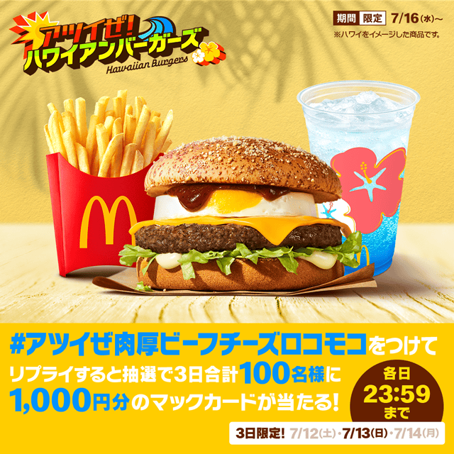 日本マクドナルド株式会社(本社:東京都新宿区、代表取締役社長兼CEO:トーマス・コウ)は、今年も夏を盛り上げる恒例のハワイキャンペーンを実施いたします。新商品の「ザク切りポテト&肉厚ビーフ やみつきチーズペッパー」のほか、リニューアルした「肉厚ビーフチーズロコモコ」と朝マック®限定「チーズロコモコマフィン」に加え、ハワイキャンペーンの定番商品「ガーリックシュリンプ」も登場します。さらに、今年は夜マック®限定の「ザク切りポテト&ダブル肉厚ビーフ やみつきチーズ&ペッパー」が新登場し、ドリンクの新商品「マックフィズ®/マックフロート® ブルーハワイ2025」、サイドメニューのリニューアル商品「シャカシャカポテト® サワークリームオニオン味」も合わせて、全8種類(新商品4種、リニューアル商品3種含む)の商品を、7月16日(水)より全国のマクドナルド店舗にて期間限定で販売いたします。