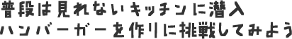 「マックアドベンチャー®」は、 ハンバーガーやポテト、ドリンクの作り方など、 マクドナルドならではのお仕事体験ができる ドキドキワクワクプログラムです。