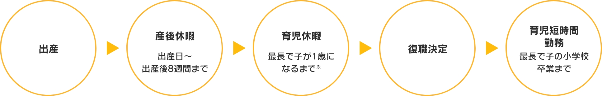 さらに、子供が小学校を卒業するまでは、育児短時間勤務(最大3時間短縮)を選択することもでき、自分に必要な休暇日数・勤務形態を上司と相談して決めることができます。