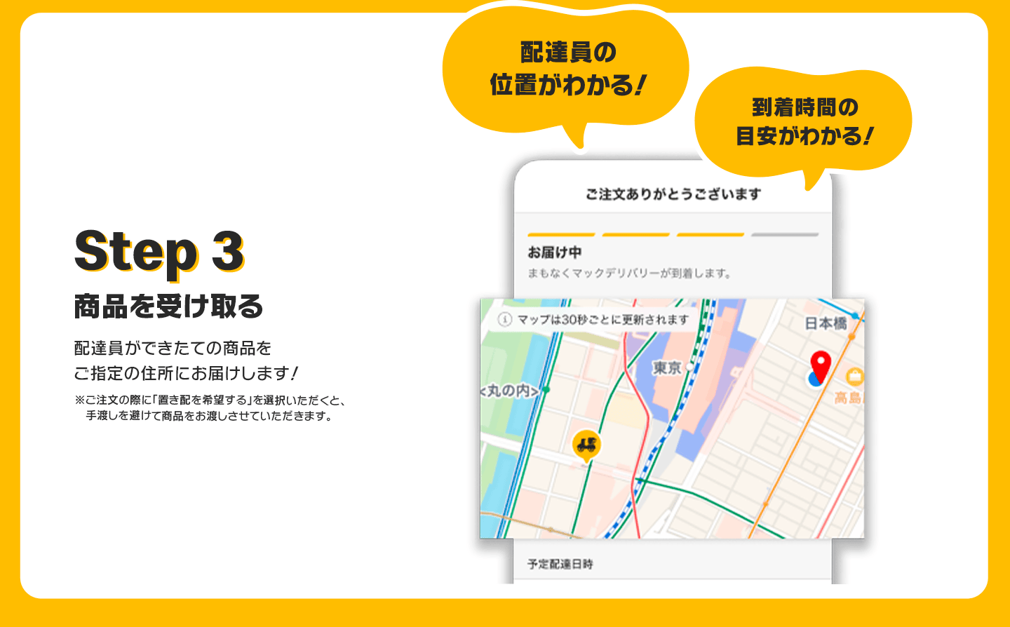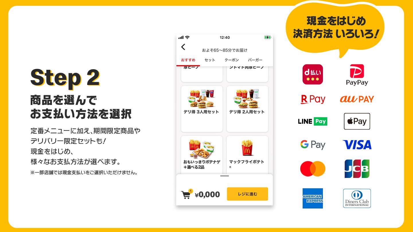 注文条件:¥1,500から注文可能(朝マックは¥1,000から)。