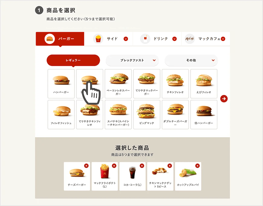 調べたい商品を選択します。最大5つまでお選びいただけます。