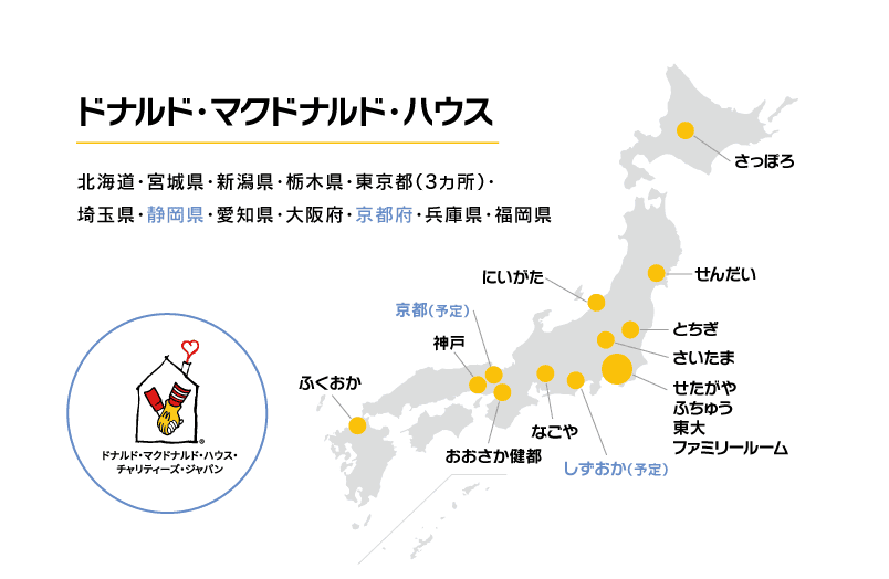お寄せいただいた募金は、ハウスを運営する公益財団法人ドナルド・マクドナルド・ハウス・チャリティーズ・ジャパンに寄付させていただいており、日々の運営や新しいハウスの建設など入院中の子供とその家族の支援に役立てられています。
