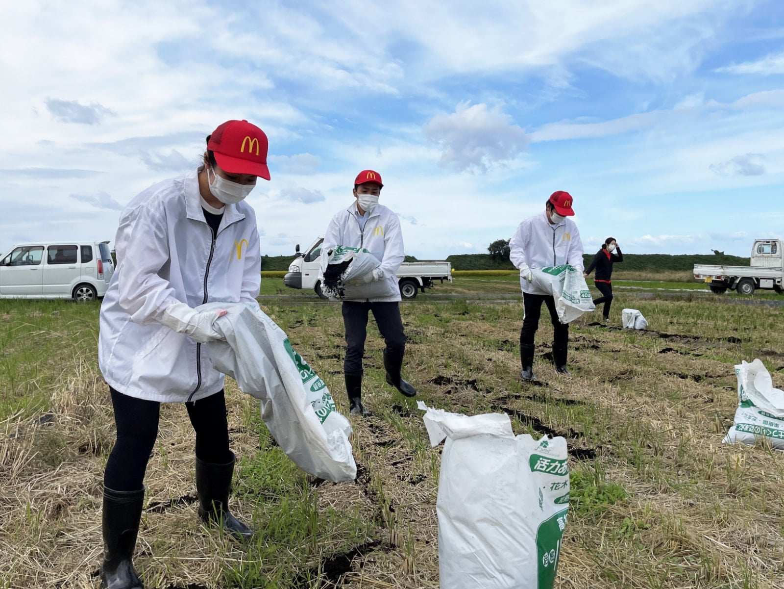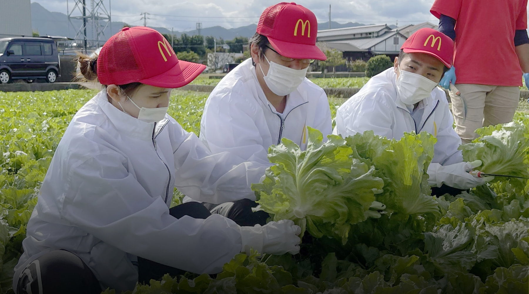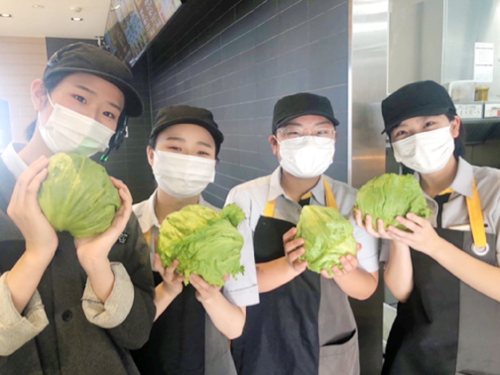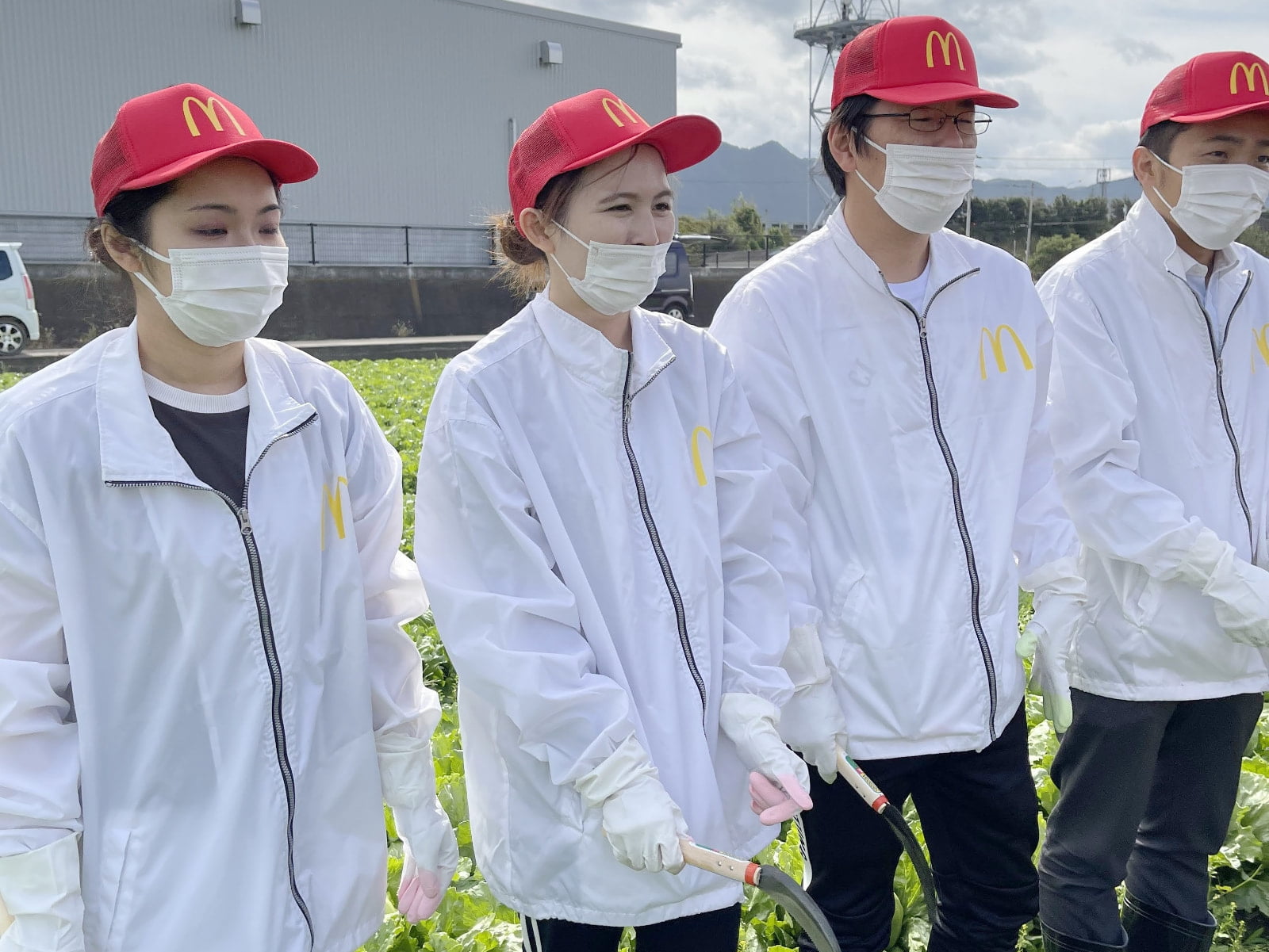 参加者は、大平やさい(株)の大平社長をはじめ従業員の皆さんから丁寧なレクチャーを受け、たい肥を撒いてみるも想像以上の重労働だった。「今回は体験として楽しみながら作業をすることができましたが、これを日々行うことを想像すると農家の方々には頭が上がりません。私たちが食べているもの、提供しているものの裏には、支えてくれる人と、その方たちの想いがあることを改めて感じました。」と体験を振り返った。普段店舗で調理しているレタスはカットされた状態で届くが、土のついた丸々としたレタスを収穫する中で、「レタス一枚でも無駄にできないなあ」という思いが強まるとともに、自然を感じながらの作業に充実感でいっぱいになったという。