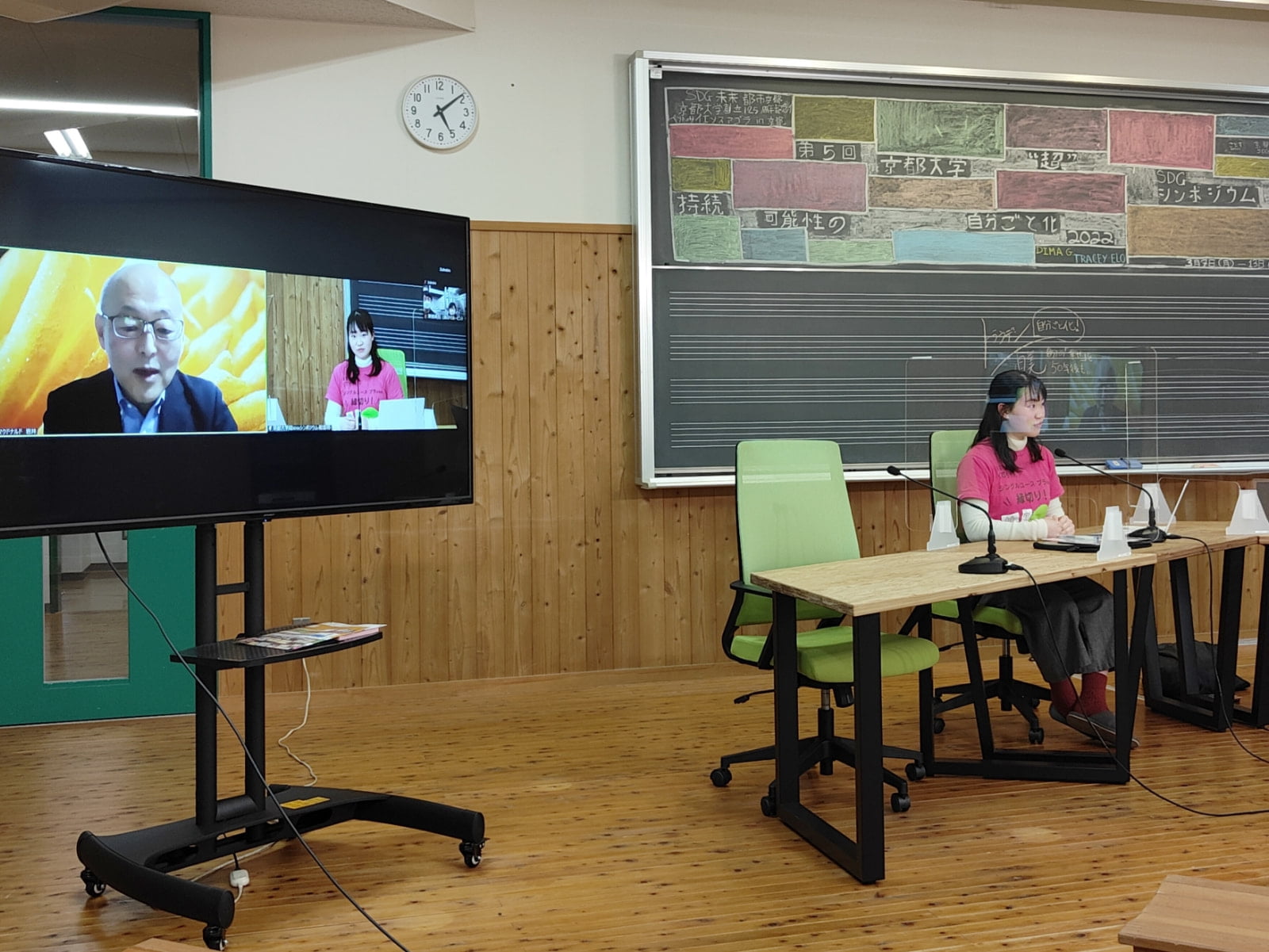 特別セミナー「きょうから始める食の持続可能性」ではまず、京都大学の学生による「サステナブル・ラベルを活用して環境負荷の低い食糧を選ぶことが、食の持続可能性につながる」という提言がなされました。これに答える形で、サスティナビリティ&ESG部の岩井が登壇。マクドナルドが取得しているMSC認証やレインフォレスト認証といったサステナブル・ラベルを例にあげ、企業が認証制度を利用する重要性についてディスカッションしました。学生からは「認証制度を周知するにはどんなことが必要か?」といった質問がなされるなど、活発な質疑応答を経てセミナーは幕を閉じました。