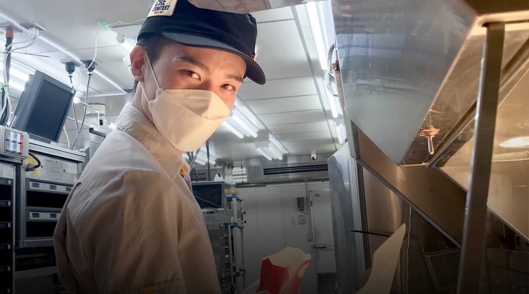 2022年にはマネージャーになるために集中したいと決めていた榎本は2021年大会を最後のオール・ジャパン・クルー・コンテストにしようと決心していたという。「1回目、2回目も絶対に勝たなきゃいけないという思いが強かったのですが、なぜ負けてしまったのかを改めて考えてみました。そこで気付いたのは、質や早さなど全部を完璧にやろうとする分、欠けてしまっているものがあったということ。僕が得意な『クオリティ』と『クレンリネス』を重視し、その分減速してしまうのは仕方がないと、ある程度割り切って挑みました。とはいえ規定のタイムは厳守。その上でクオリティ、ポテトの最適量はミスしないよう心がけました」と榎本は話す。そうして、ラストチャンスに悲願のオール・ジャパン・クルー・コンテストチャンピオンを勝ち取った。