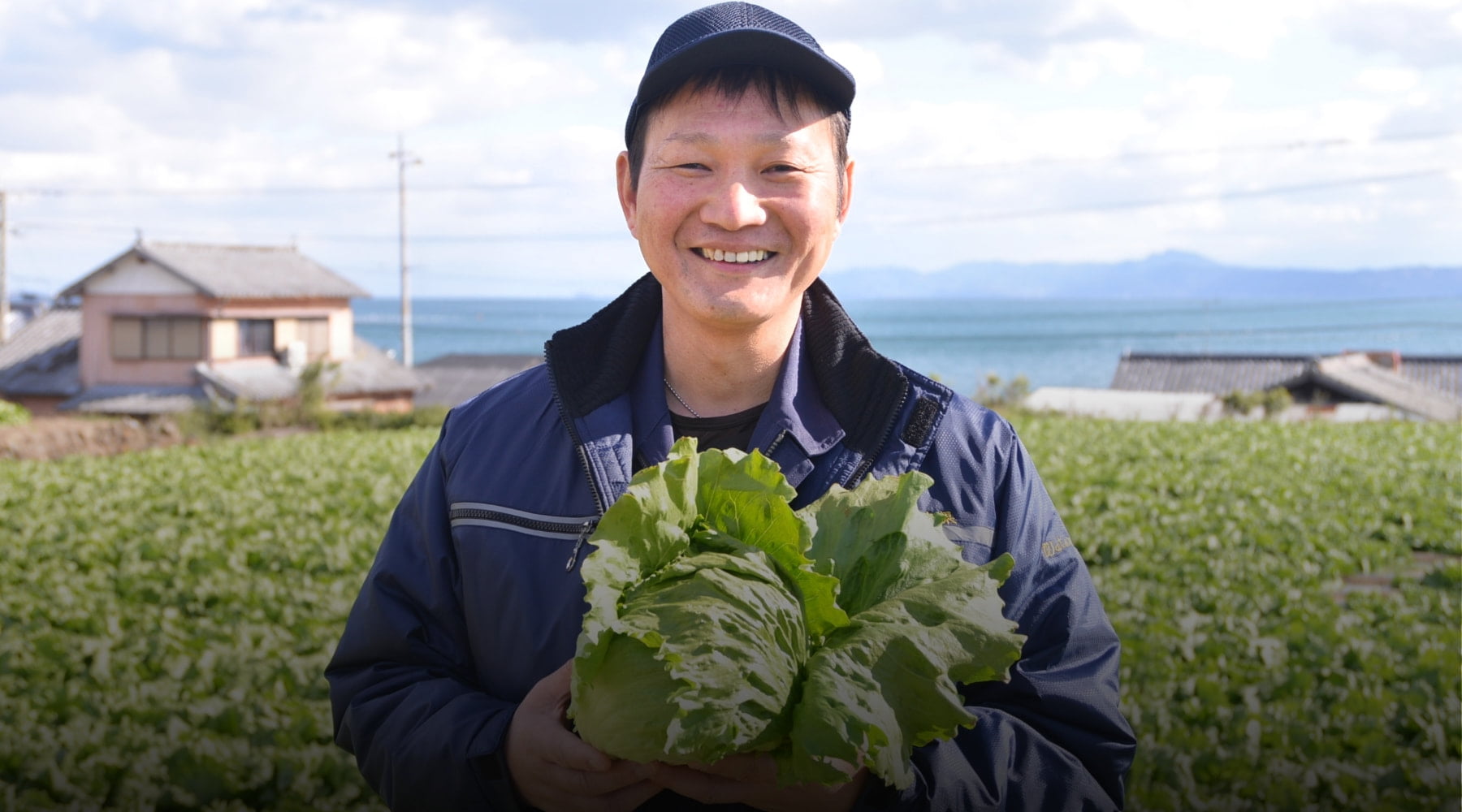 「代々ジャガイモを中心に作っていましたが、その後レタス栽培も始めました。長崎の島原半島はレタスの一大産地で、特に冬のレタスは全国一の生産量を誇ります。理由は第一に温暖な気候。さらにこの地特有の傾斜を生かすことで、冬でも元気に育つんです」と松尾さん。同社では山地だけでなく、海のそばの標高の異なる場所に畑を持っている。「山と平地では気温が2~3度違うので、時季ごとに適したレタスが作れるんです。また、ここは海面が反射した太陽光を傾斜地がしっかり浴びますから、それもレタスがすくすく育つ理由ですね」。南島原の豊かな大地は松尾さんの誇りなのだ。