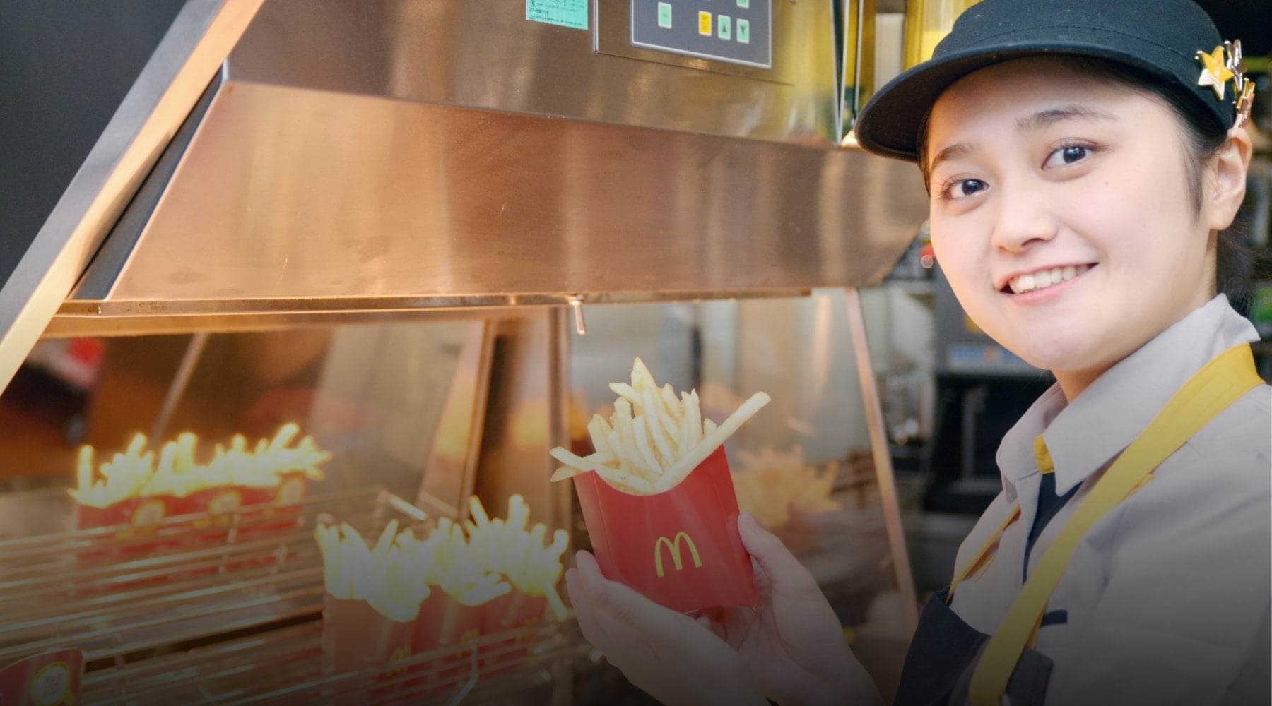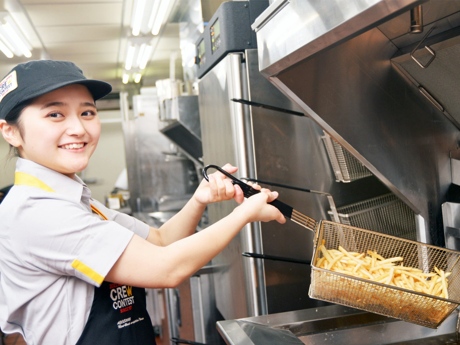 「仕事から離れている時も、マクドナルドはずっと大好きだったんです。ある日、『それならまた一緒に働こうよ!』と背中を押していただいて。AJCCのポテトパーソン部門で出場することになったきっかけも作っていただきました。以前は接客のポジションを中心に働いていたのですが、『ポテトパーソンでAJCCに出よう。絶対にいい経験になるから!』と。最初は自信がなかったんですけど、期待に応えたいと思ってトレーニングに励みました」と振り返る。そして、奥は同僚や店長、マネージャーへの感謝も言葉にした。「私がチャンピオンになれたのは店舗の皆さんのおかげです。練習する時間を作ってくれたり、製造シーンの動画を撮ってより良くなるように改善のトレーニングをしてくれたりなど多くの方に協力してもらいました。中でも前回チャンピオンの、お客様に最高のポテトを提供するためにどうしたら良いのかを追及するトレーニングは的確でとても勉強になりました。本当に店舗の皆さんへの感謝は尽きません」。