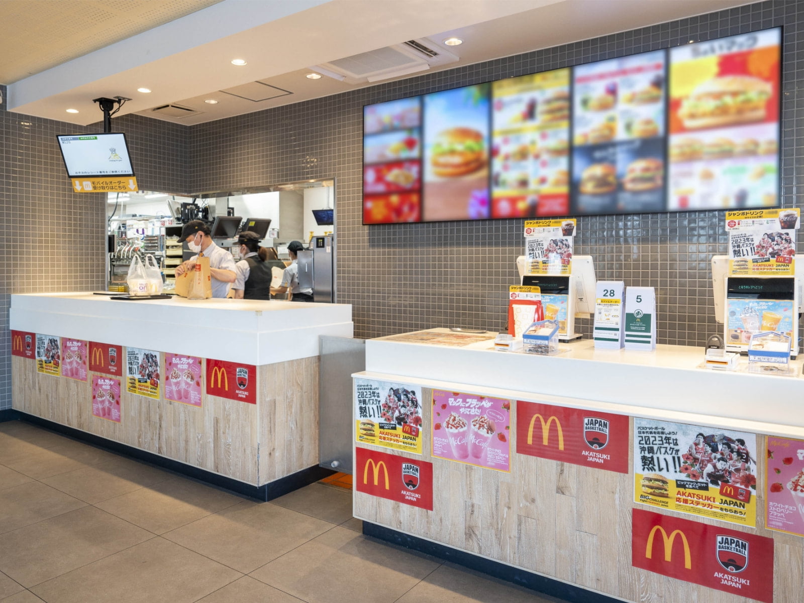 「地域に根付くお店として、沖縄で開催される一大イベントの盛り上がりに貢献したいという想いが根幹にありました。会期中の『AKATSUKI JAPAN』と企業におけるタイアップは、マクドナルドならではのユニークな取り組みでもあります」。マクドナルドの基準を満たしながら、それぞれの地域性やお客様に合わせて、各店舗のカラーを生かした展開を考案。オリジナルの店内POPをはじめ、スタジアムに近い店舗は横断幕を掲げるなど宣伝の方法も工夫した。