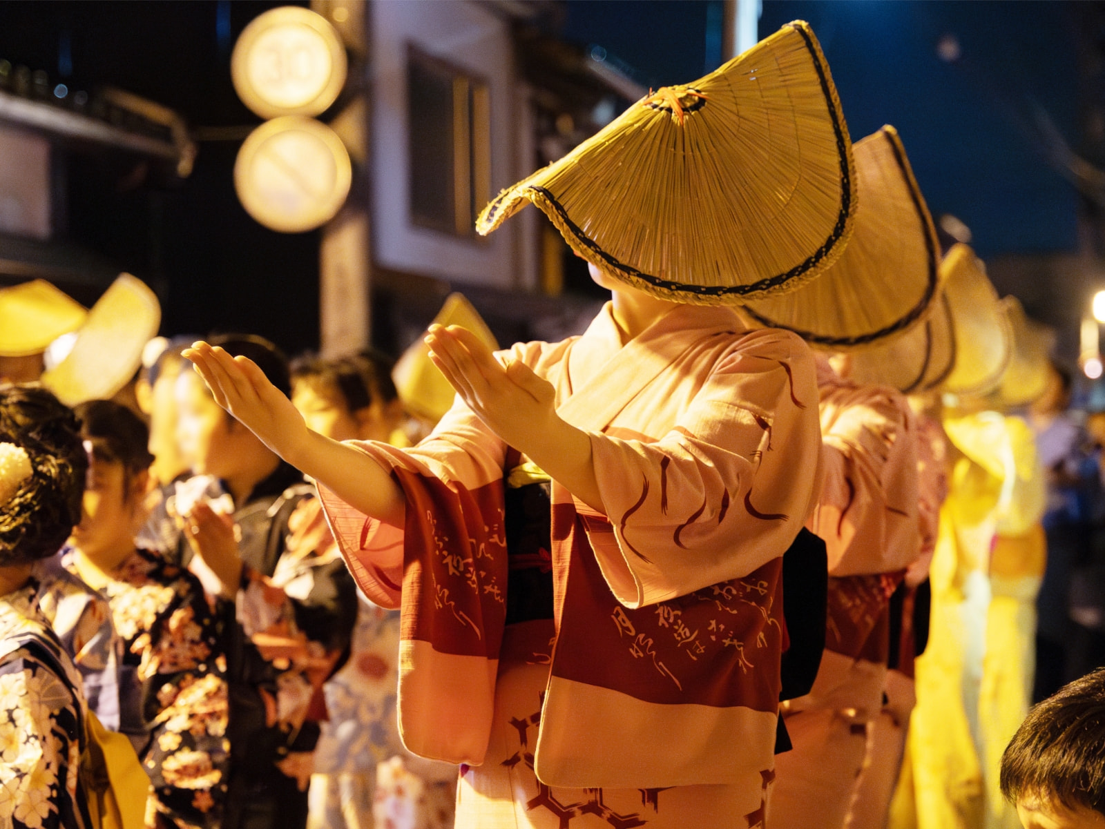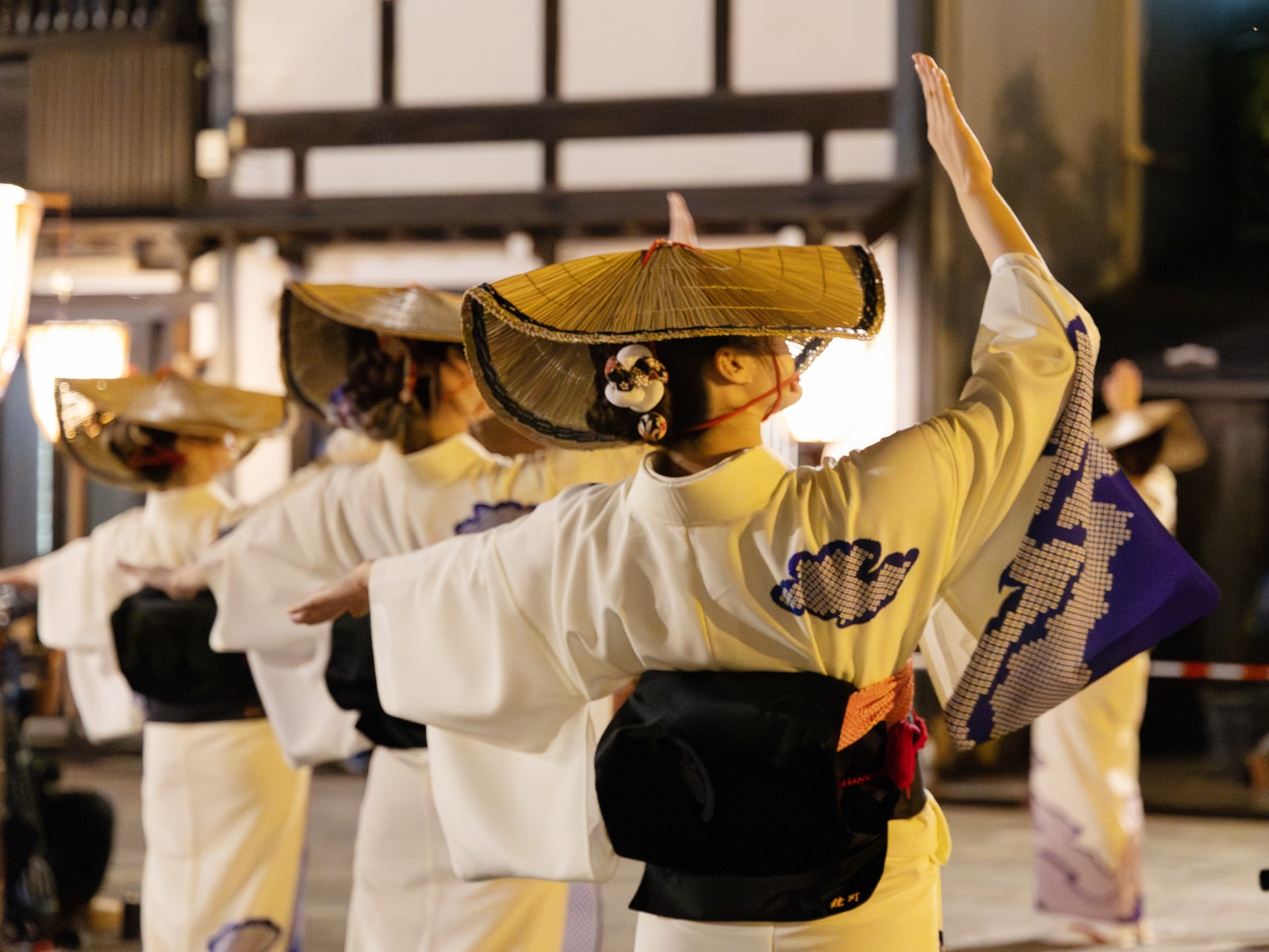 そう教えてくださったのは、富山県民謡越中八尾おわら保存会 おわら風の盆行事運営委員会 会長を務める金厚 有豊さんです。全国の盆踊りとは異なり「おわら風の盆」では、三味線や胡弓の地方(じかた)に合わせ、揃いの法被や浴衣姿に編笠をつけた踊り手がしめやかに夜の街を流し歩きます。八尾地区では幼少期から誰もが踊りを習い、開催に向け地域一帯となって取り組むのです。