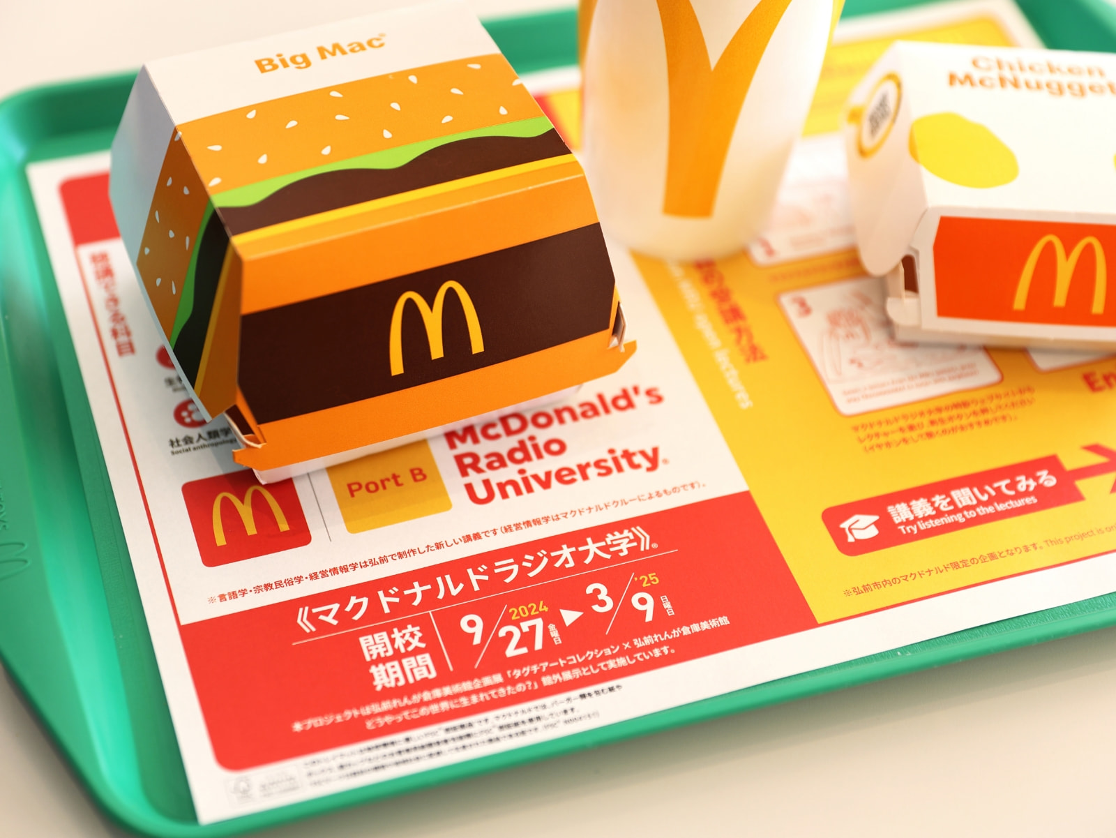 前回の鳥取に続く新たな舞台は、城下町の風情が残る青森県弘前市。弘前れんが倉庫美術館で開催されている企画展のサテライト展示として、弘前市内のマクドナルド4店舗で講義を聞くことができます。