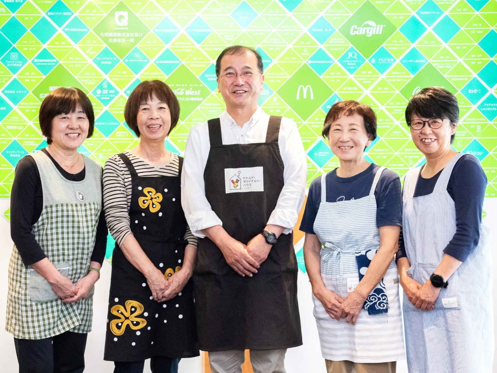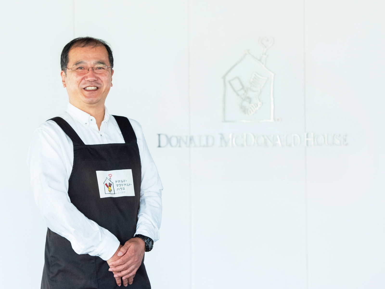 そう想いを語るのは、ふくおかハウスを開設前からサポートしてきたハウスマネージャーの舛元 啓二さんです。実は、以前はマクドナルドの店長も務めていました。店舗の近くにこども病院があったことから、笑顔を届けようとドナルドや店舗の仲間たちと一緒に病院を訪問することも。そんな中では、治療に付き添うご家族の大変さも目の当たりにしました。